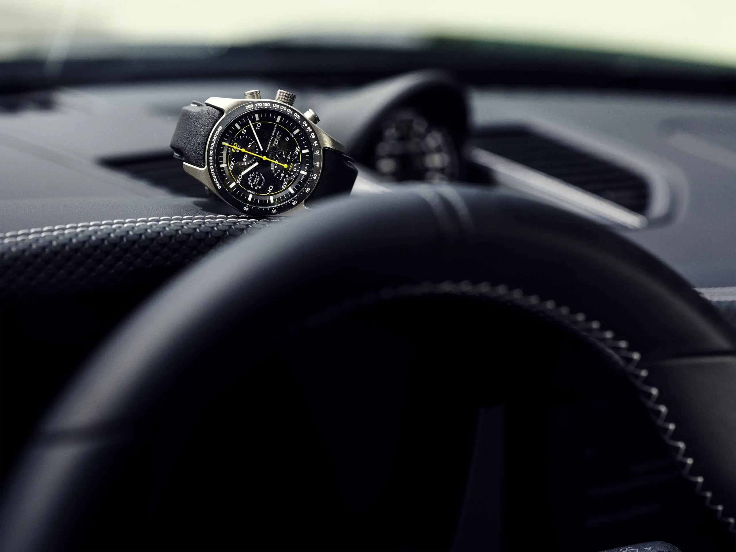 De wijzerplaat is uitgevoerd in GT3 design met gele accenten en doet denken aan het instrumentenpaneel van de auto. De rotor op zijn beurt verwijst duidelijk naar het wieldesign. De wijzerplaatring is leverbaar in elke kleur die ook beschikbaar is voor de 911 GT3 – zelfs kleuren uit het Paint to Sample programma zijn beschikbaar.