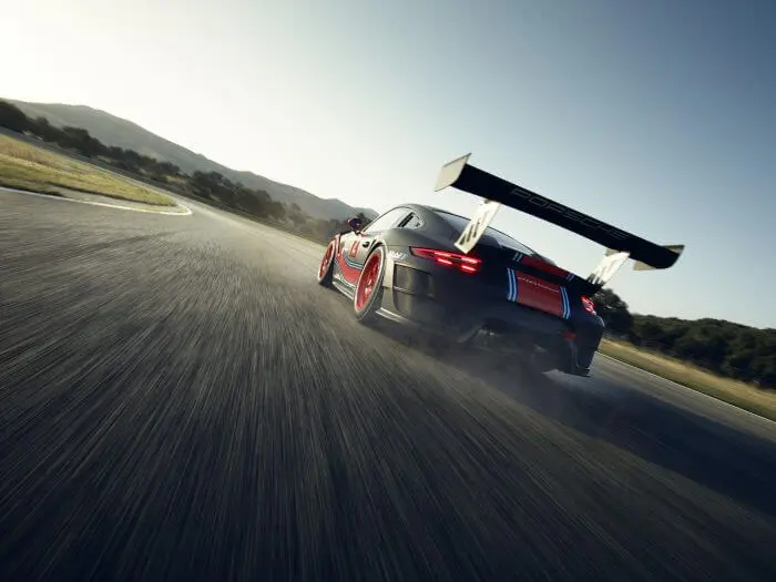 - Achterin geplaatste watergekoelde 6-cillinder biturbo-boxermotor met starre ophanging, motorinhoud 3.800 cm3, vier kleppen per cilinder, Variocam nokkenasverstelling. Vermogen: ca. 515 kW (700 pk)