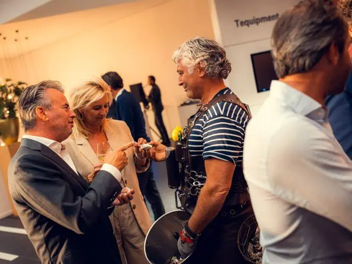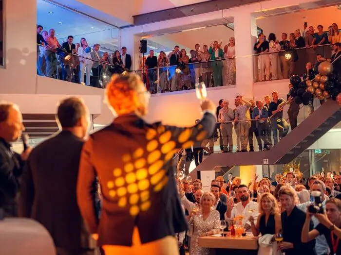 In samenwerking met lokale partners zorgde CarPort Rotterdam ervoor dat het de gasten aan niets ontbrak. Zo stond restaurant La Salute met eigenaar Libero op de Porscheplatz. De Ballentent nam de Schade over en Schmidt Zeevis serveerde verse tonijn en zalm in de Approved showroom. Een verfrissend Rotterdams biertje kon je halen bij Brouwerij Noordt in de lounge op de eerste verdieping en een lekkere gin & tonic van NOLET’s Gin stond klaar in de Cosmetic die omgetoverd was tot discotheek. Tot slot stond Chez Jan met haar hotdogkraam in de werkplaats voor de lekkere trek. Harrie: “De sfeer was optimaal; er ontstond een soort chemie die maakte dat klanten van elkaars aanwezigheid genoten én hun gezamenlijke passie konden delen: Porsche. Of ze nu met een Taycan reden of met een 911, ze vonden elkaar tijdens ons feest. Wij waren van mening dat ‘Connect & Celebrate’ vooral was bedoeld om klanten een topavond te bezorgen waarbij ze elkaar onder het genot van een hapje en een drankje konden ontmoeten. Ze waren er uitdrukkelijk niet om uitgebreide speeches aan te horen, dus hebben Robert Doornbos en ik onze praatjes dan ook zo kort mogelijk gehouden. Zonder teveel voorbereiding was er wel een rode draad in onze verhalen te herkennen: Robert, mijn collega Ed van der Lans en ik zijn apentrots op het pand, ons team, het merk en de relatie met onze klanten.”