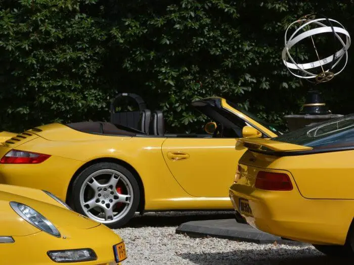 Porsche introduceerde de knalgele kleur met de code 12G/12H voor het eerst op de 964. Vanaf dat moment was Speedgelb op alle modellen van de 911 verkrijgbaar, tot en met de 997. Daarna verdween Speedgelb van de kleurenstaal om plaats te maken voor het veel ‘minder’ gele Racing Gelb, maar de tint bleef als Paint to Sample wel leverbaar. Ook de 968 (Clubsport) en de Boxster waren in Speedgelb verkrijgbaar. “In Nederland staan 599 Porsches geregistreerd in de kleur geel. Hoeveel daarvan specifiek Speedgelb zijn, is me niet bekend,” vertelt Ivo Tiesema. “Porsche levert natuurlijk een hele kleurenwaaier aan gele auto’s. Speedgelb was maar een van die tinten.”