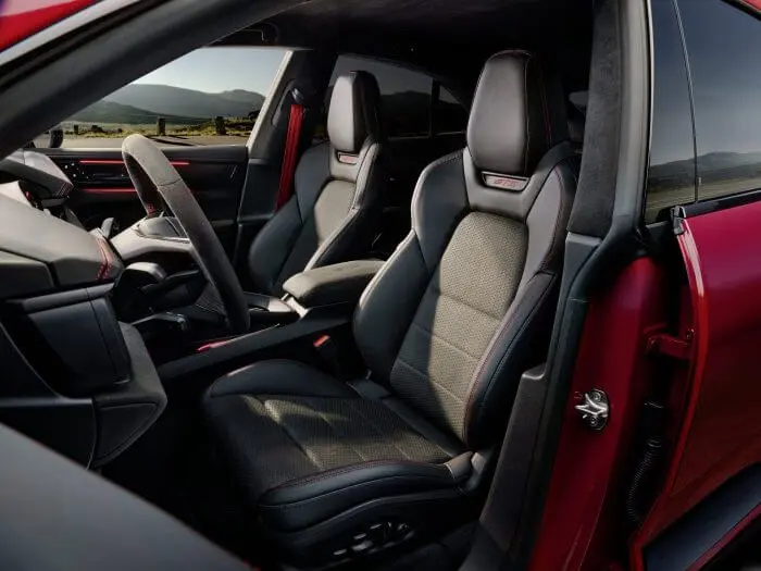 Het GTS-thema zet zich voort in de digitale cockpit. Daarin verschijnt de exterieurkleur als 3D-visualisatie op het centrale scherm, terwijl het instrumentencluster het GTS-logo toont. Via het standaard Sport Chrono pakket zijn functies als rondetijden, telemetrie en sectoranalyse direct oproepbaar.